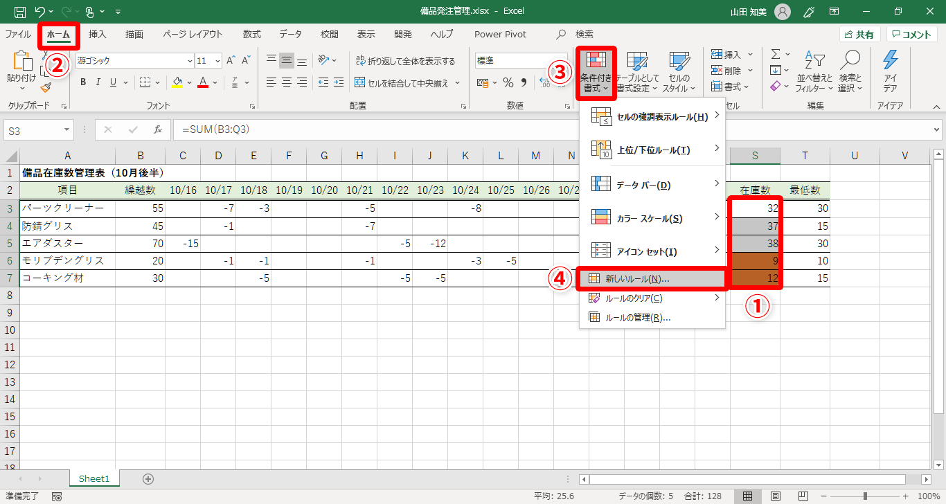 【Excel】在庫が少なくなるとエクセルの管理表が教えてくれる!備品の発注を忘れないためのテクニック