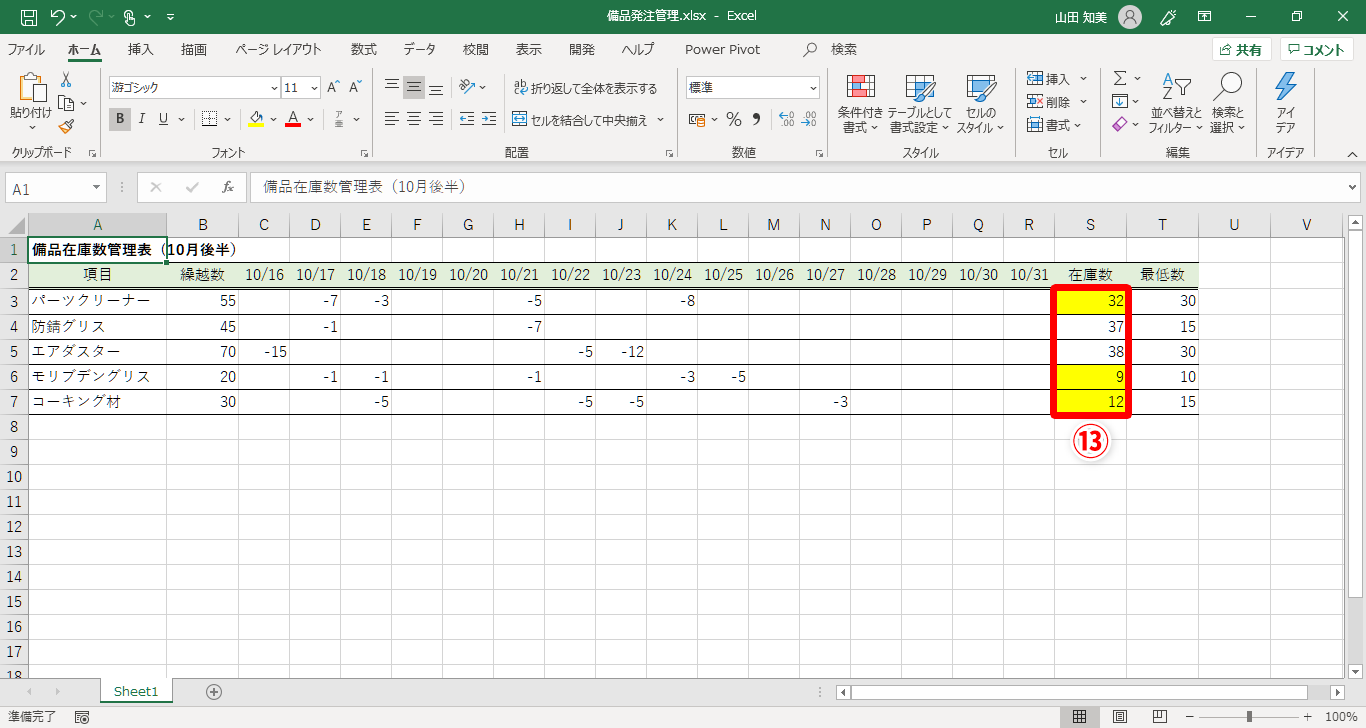 【Excel】在庫が少なくなるとエクセルの管理表が教えてくれる!備品の発注を忘れないためのテクニック