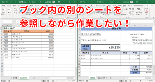 【Excel】別のシートを参照しながら作業したい!エクセルで同じブック内の複数のシートを並べて表示するテク