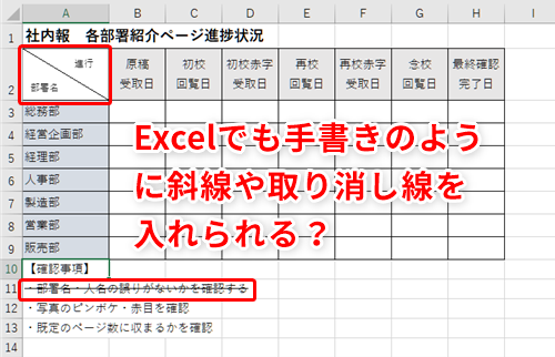 【Excel】セルを斜めに分割したい時や文字に取り消し線を入れたい時はどうする?手書きでよく作るスタイルの表をエクセルで作る方法
