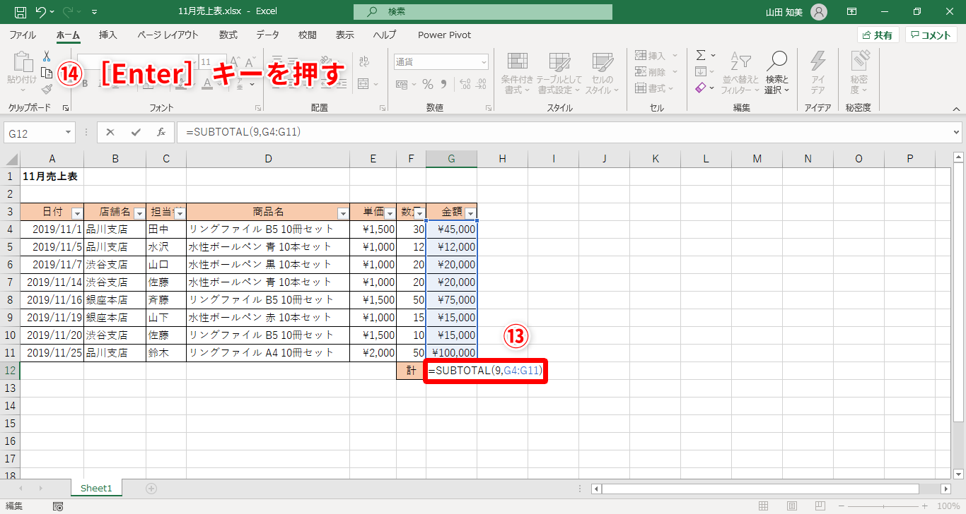 【Excel】SUMIF関数いらず!エクセルのオートフィルターとSUBTOTAL関数で特定条件のデータを集計するテク