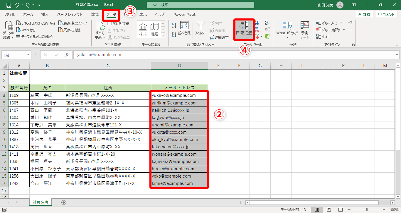 【Excel】メアドの「@」以前の文字列をアカウント名として抜き出したい!エクセルで特定の文字で文字列を分割するテク