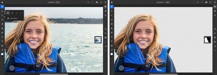 iPad版「Photoshop」に“被写体を選択”機能が追加 ~一瞬で背景の削除などが可能