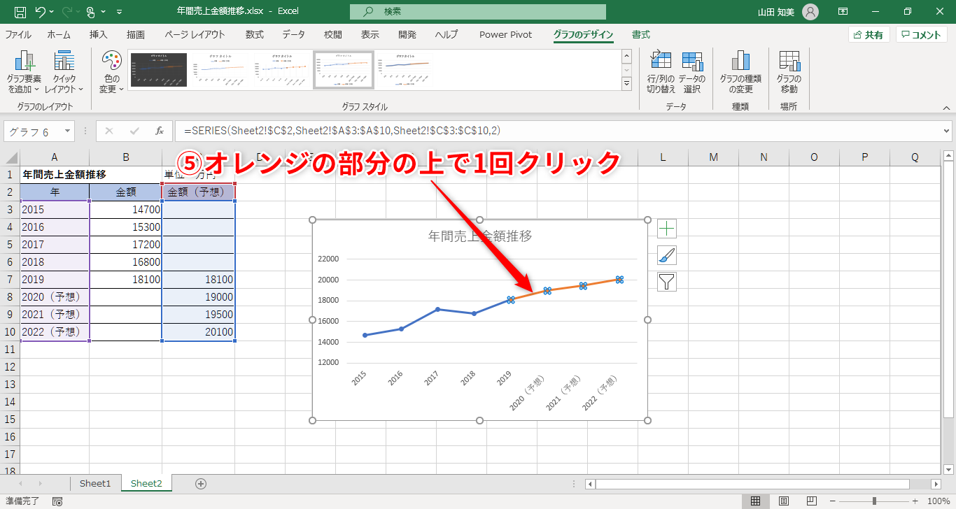 【Excel】折れ線グラフで予想値の部分をわかりやすく表現したい!エクセルでグラフの一部を点線にする方法