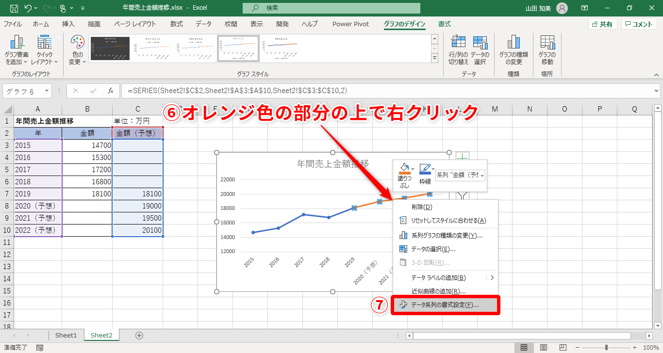 【Excel】折れ線グラフで予想値の部分をわかりやすく表現したい!エクセルでグラフの一部を点線にする方法