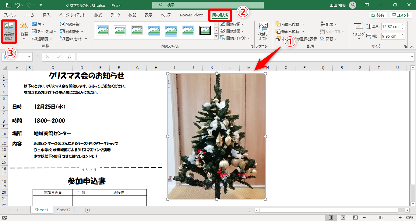 【Excel】フォトショみたいに写真の背景を削除できる機能がエクセルに?画像入り案内状をサクっと作るテク