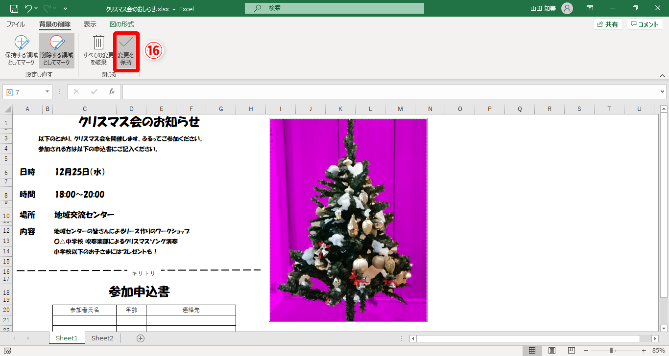 【Excel】フォトショみたいに写真の背景を削除できる機能がエクセルに?画像入り案内状をサクっと作るテク