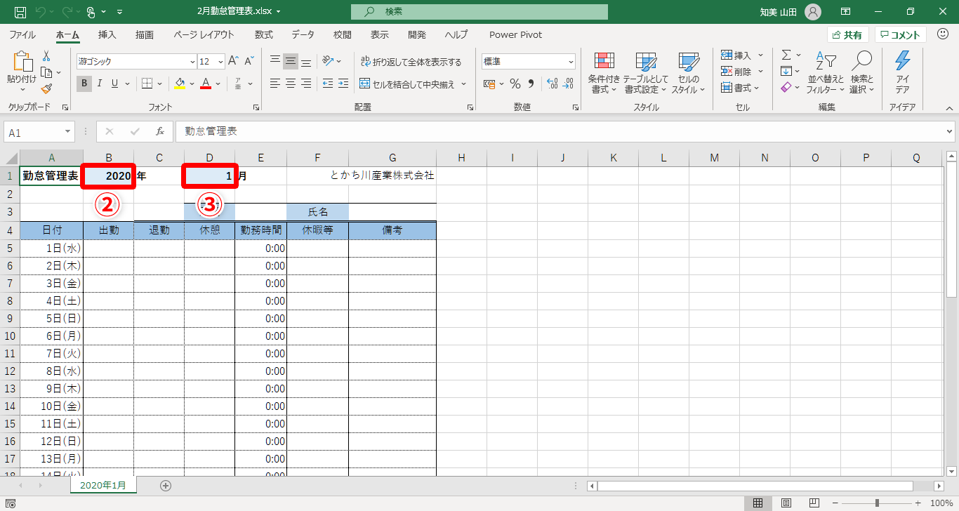 【Excel】毎月使い回す勤怠表の日付更新が面倒!エクセルで1カ所入力だけで1カ月分更新できるカレンダー作成テク