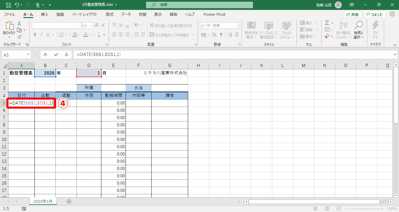 【Excel】毎月使い回す勤怠表の日付更新が面倒!エクセルで1カ所入力だけで1カ月分更新できるカレンダー作成テク