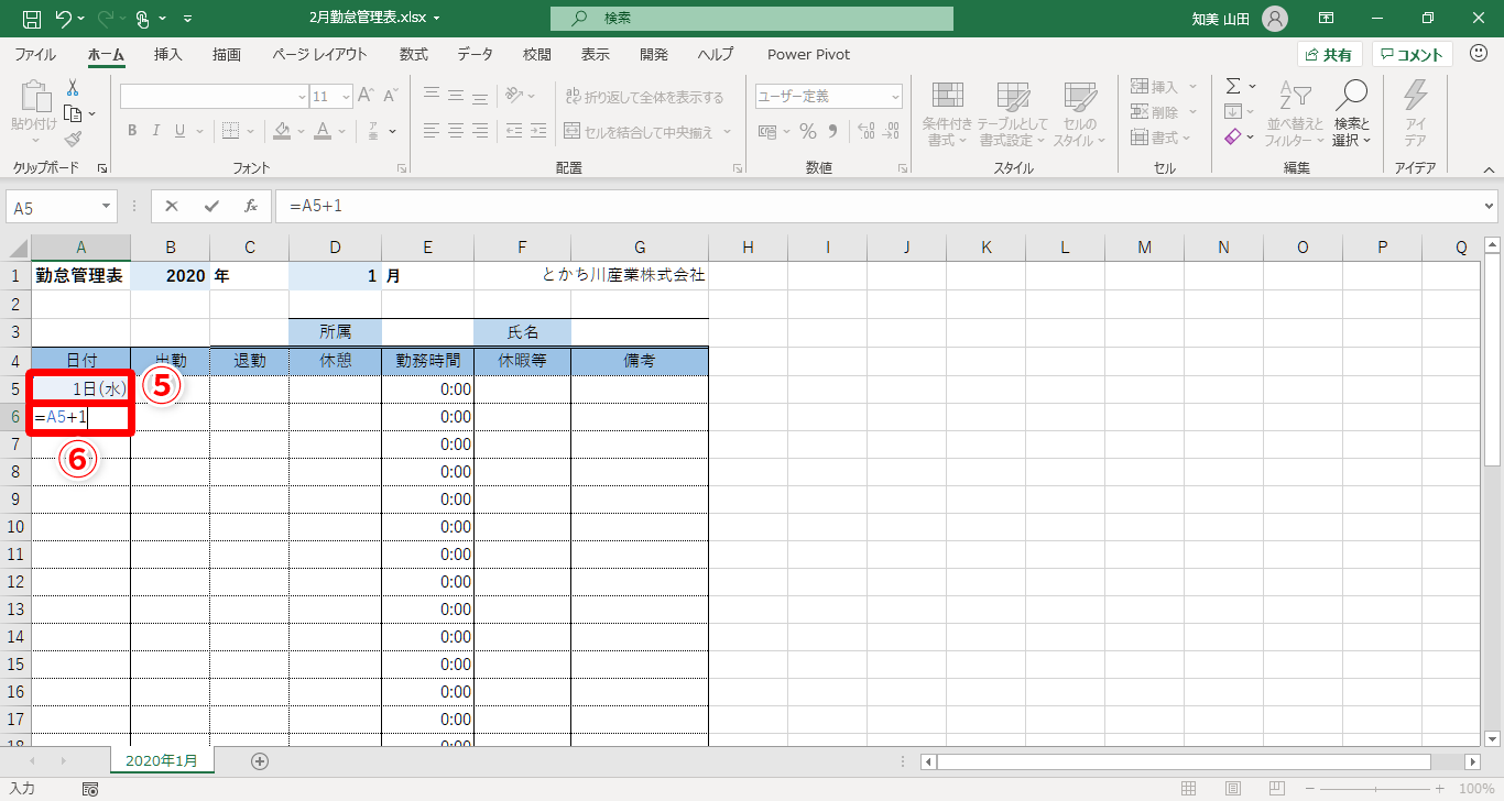 【Excel】毎月使い回す勤怠表の日付更新が面倒!エクセルで1カ所入力だけで1カ月分更新できるカレンダー作成テク