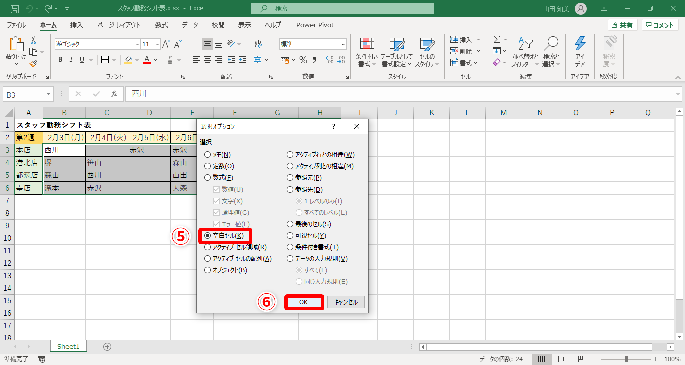 【Excel】シフト表の未入力セルは定休日であることを明示したい! エクセルで空白セルに一括で文字列や斜線を入れるテク