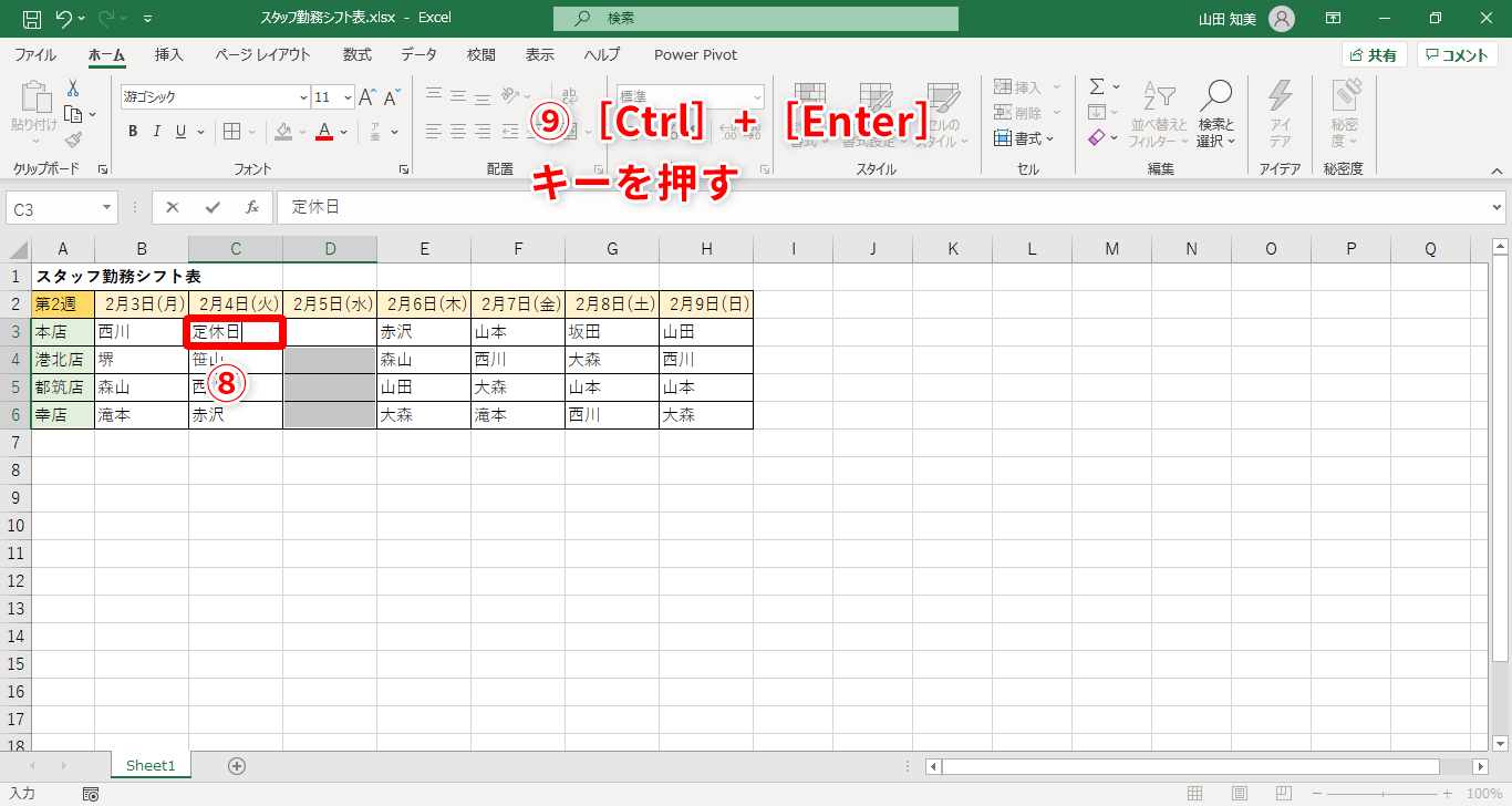 【Excel】シフト表の未入力セルは定休日であることを明示したい! エクセルで空白セルに一括で文字列や斜線を入れるテク