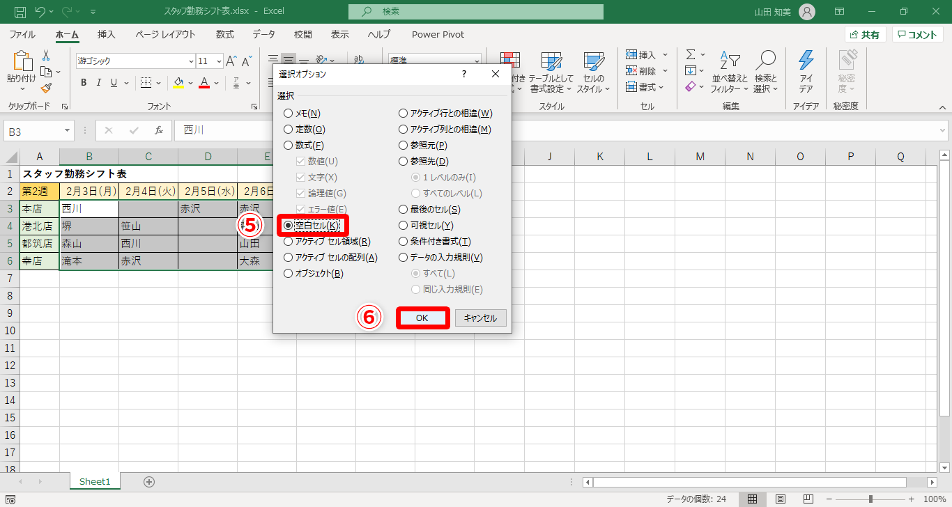 【Excel】シフト表の未入力セルは定休日であることを明示したい! エクセルで空白セルに一括で文字列や斜線を入れるテク