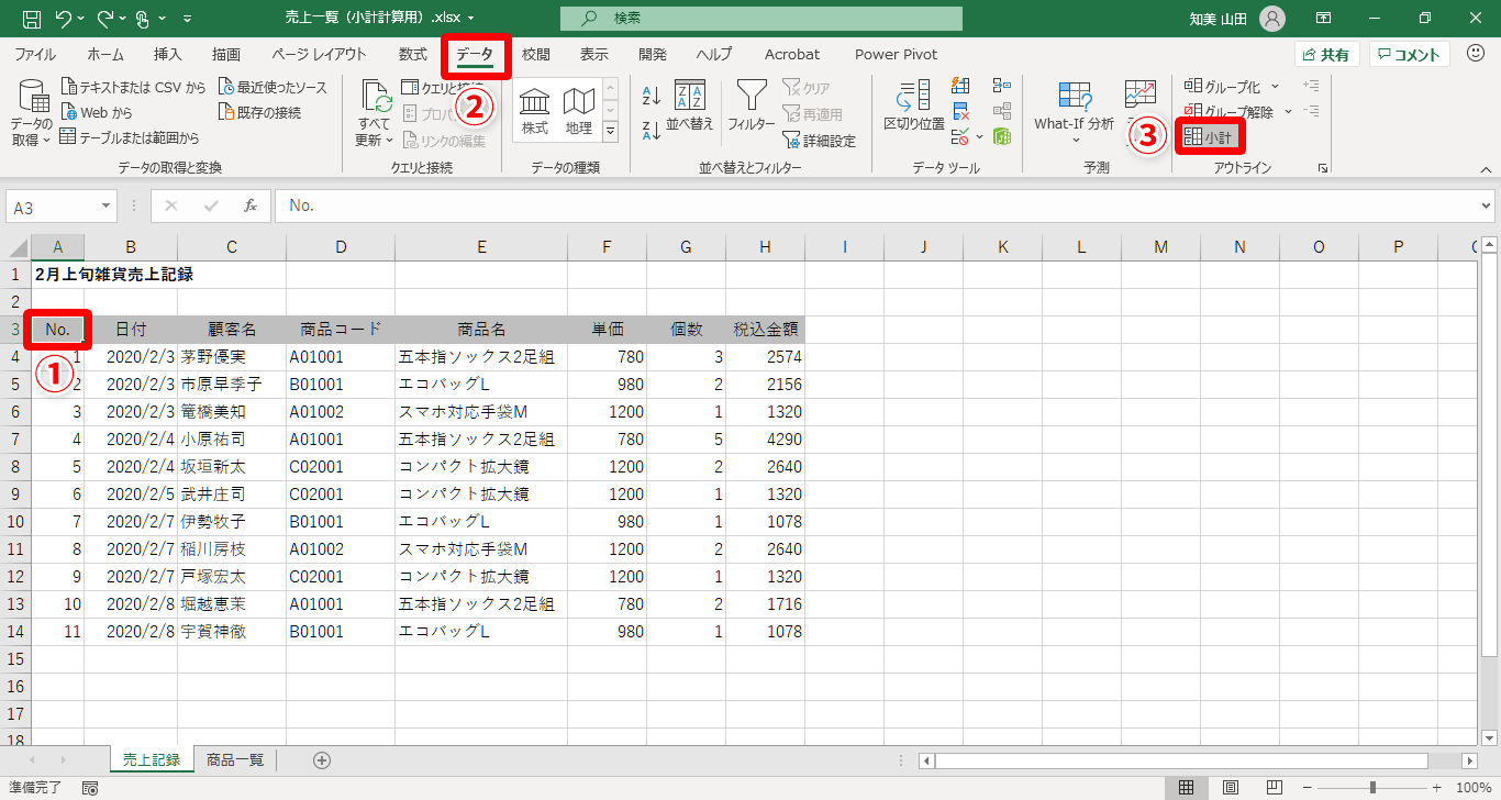 【Excel】SUBTOTAL関数が苦手な人にもおすすめ!エクセルのアウトライン機能で小計を求める方法