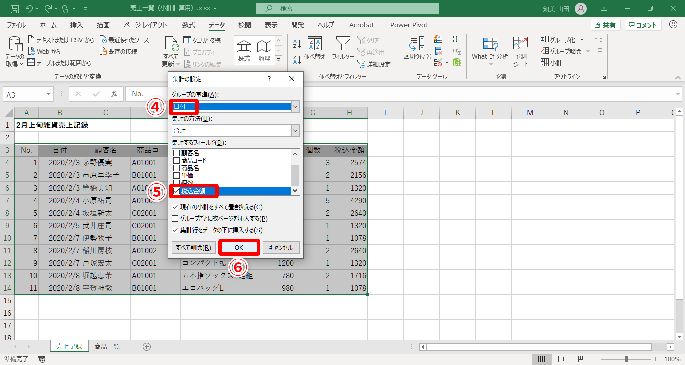 【Excel】SUBTOTAL関数が苦手な人にもおすすめ!エクセルのアウトライン機能で小計を求める方法