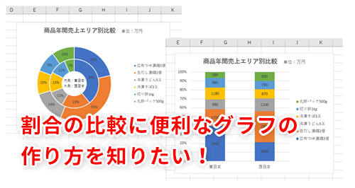 【Excel】比率の違いをわかりやすく伝えるには?割合の比較に最適なエクセルのグラフ