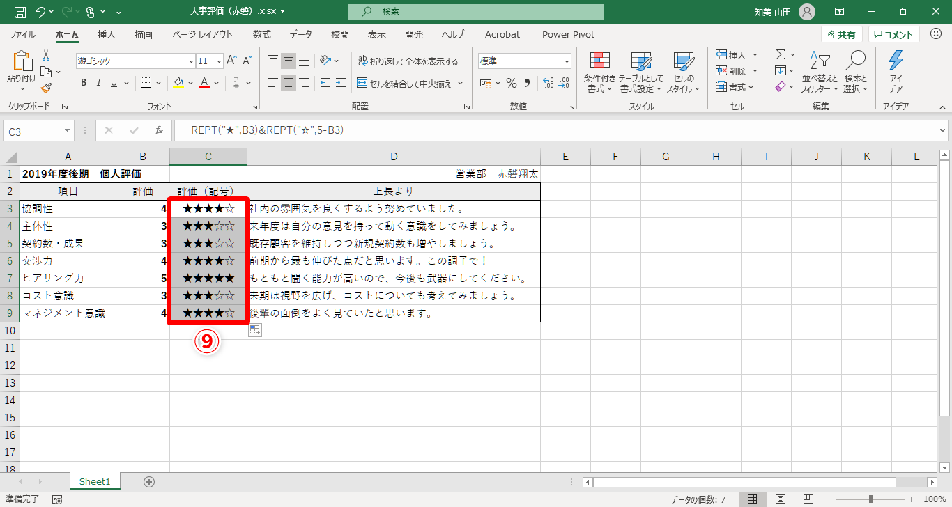 【Excel】評価を「★」の数で表したい!エクセルで数値を記号の数で表現するテクニック