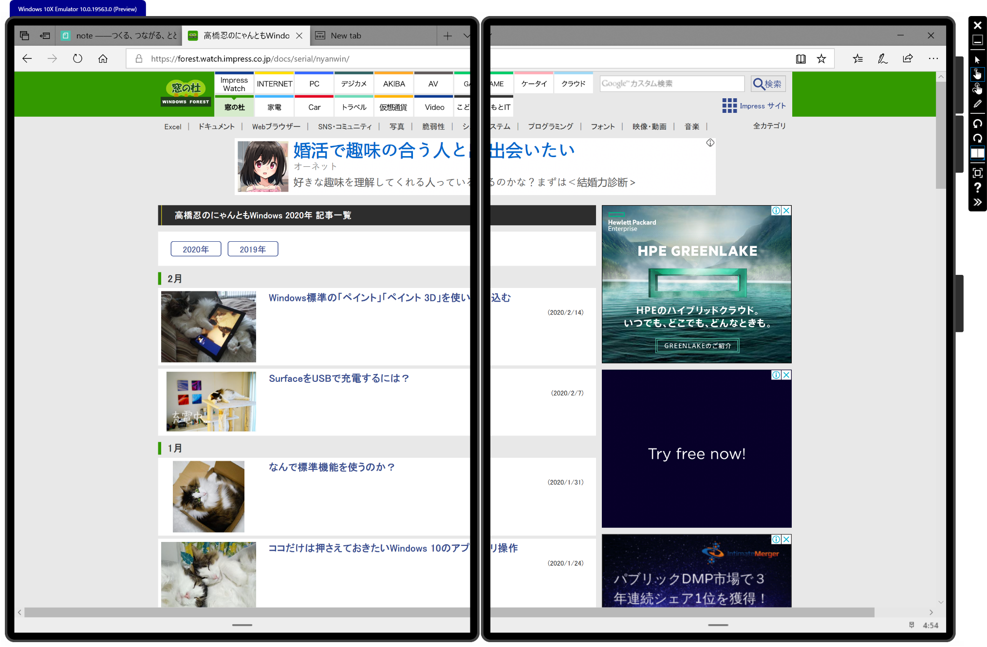 Windows 10Xのエミュレーターで遊んでみました ~2画面向けOSとMicrosoftの目指すもの(13/20)