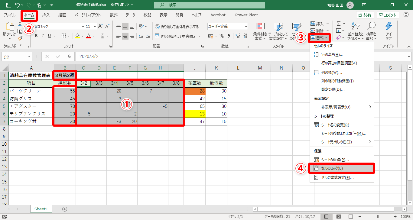【Excel】重要なセルを勝手に修正されると困る!エクセルで特定のセルだけを入力・修正できるようにするテク