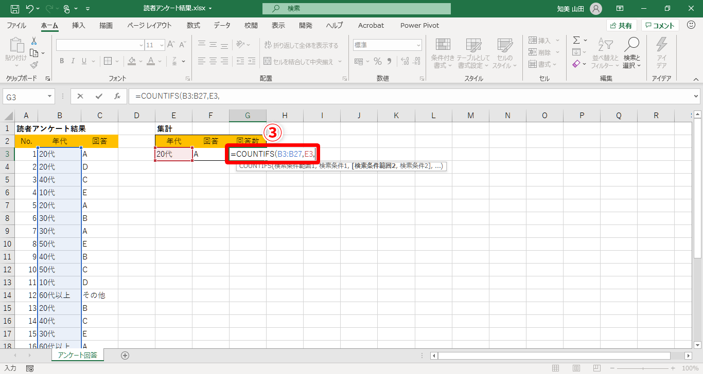 【Excel】質問の回答を年齢別に集計したい!エクセルでアンケートをクロス集計するときのコツ