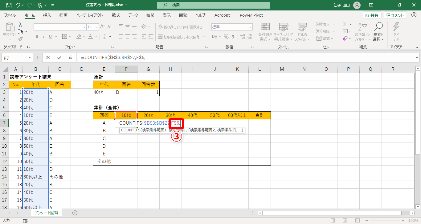 【Excel】質問の回答を年齢別に集計したい!エクセルでアンケートをクロス集計するときのコツ