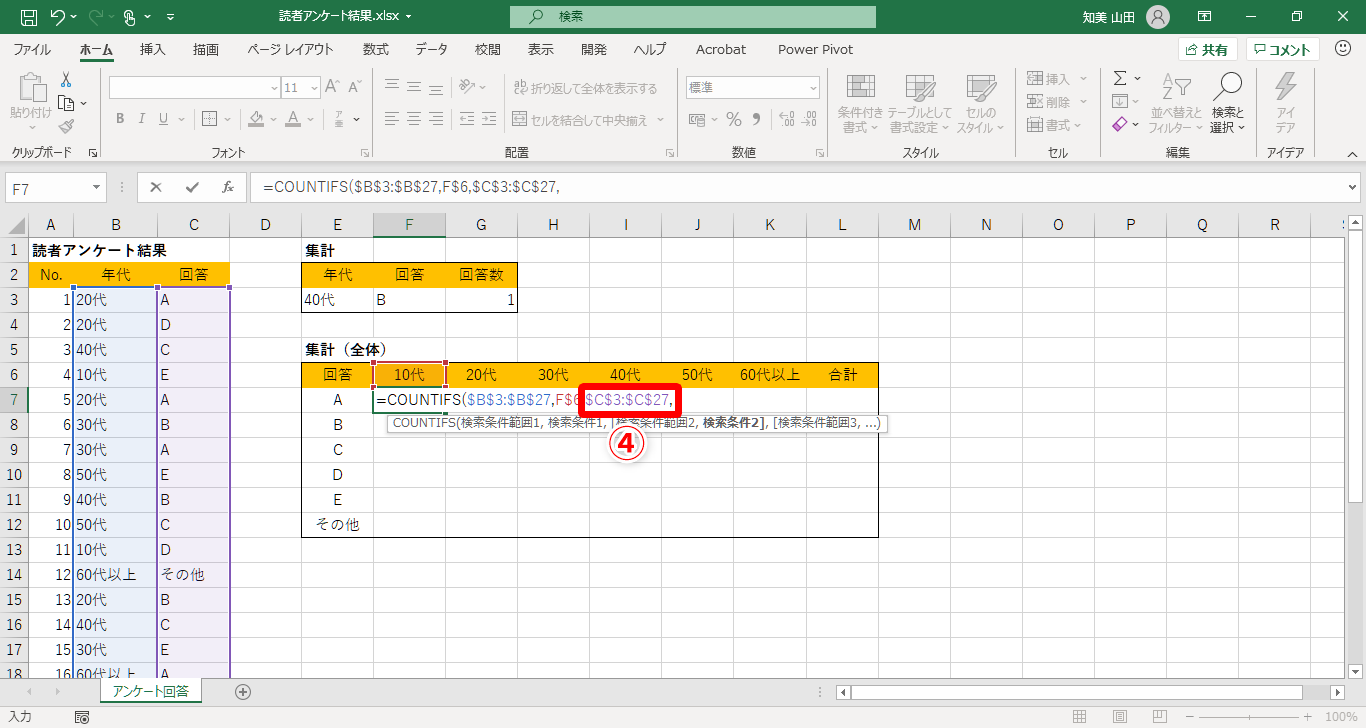 【Excel】質問の回答を年齢別に集計したい!エクセルでアンケートをクロス集計するときのコツ