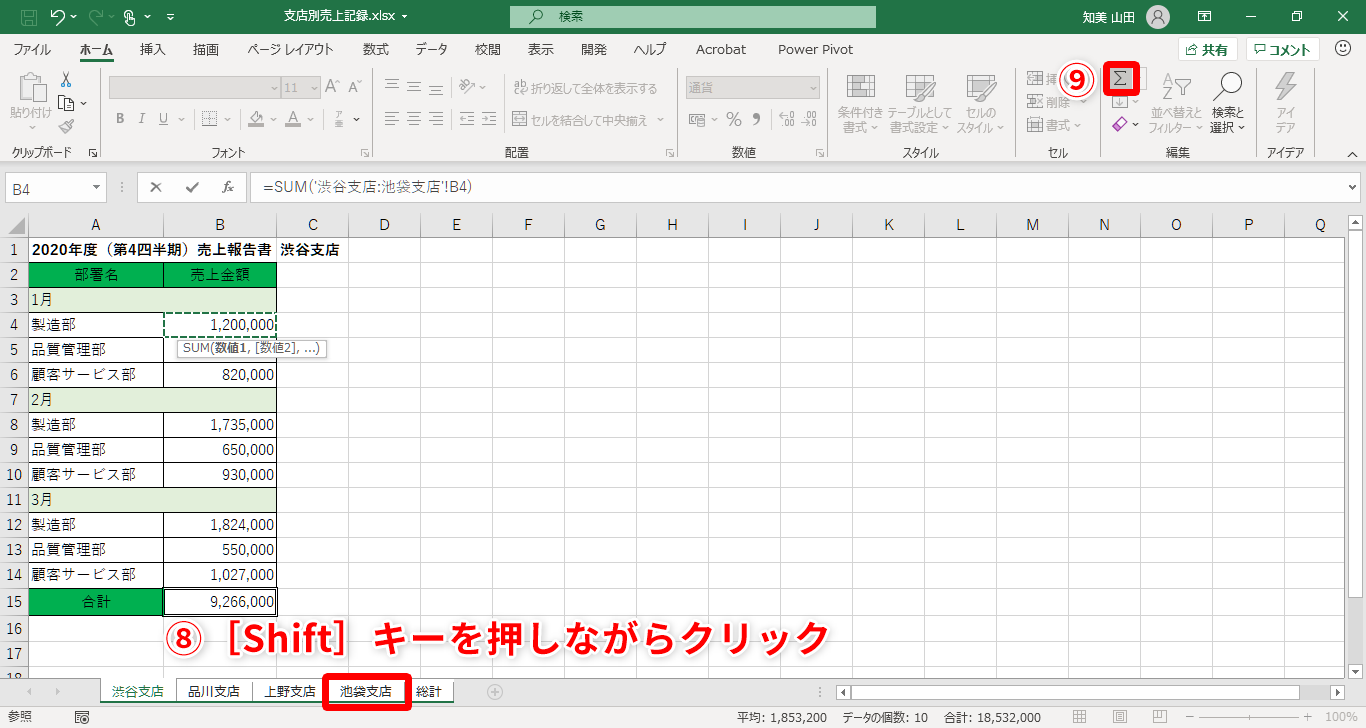【Excel】別のシートを参照しながら集計するのは面倒!エクセルの3-D集計機能で一気に複数シートを集計するテクニック