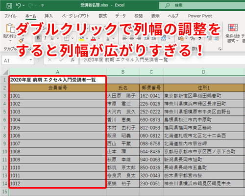 【Excel】列幅の自動調整で表タイトルの列だけ幅が広がりすぎ!回避するエクセルの裏ワザ