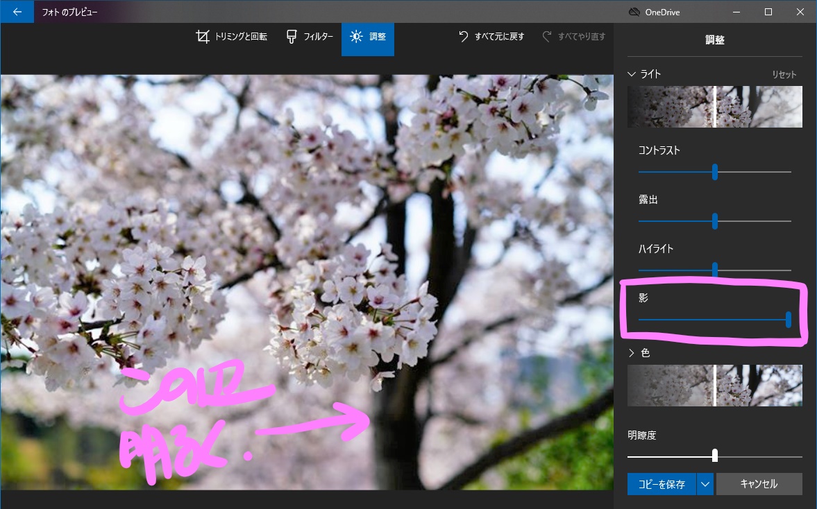 Windows 10の「フォト」を使って残念な桜の写真を美しく仕上げる
