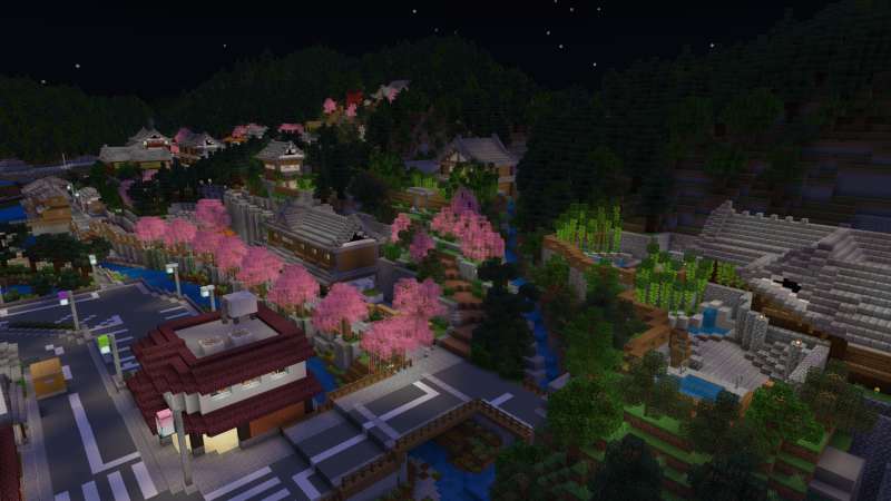 マイクラで温泉旅行!? マーケットプレイスに温泉街を再現した『温泉村』が登場(2/5)
