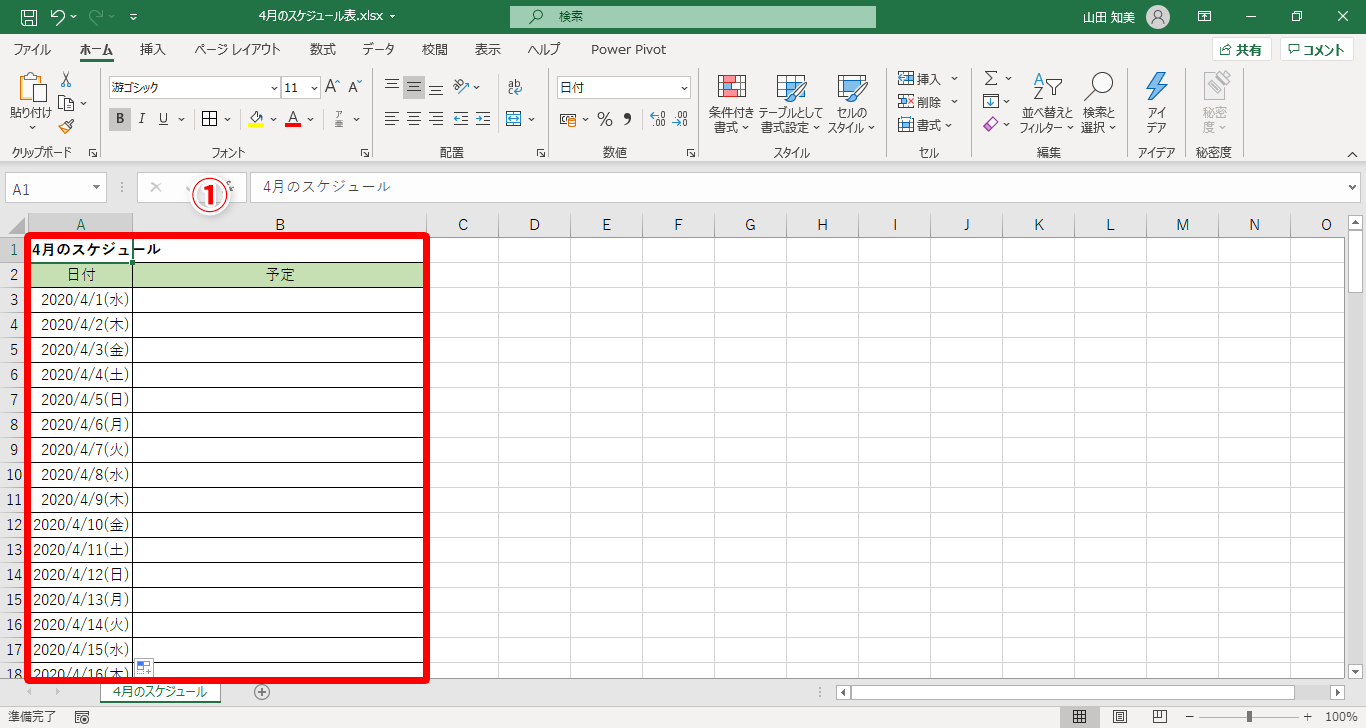 【Excel】新年度のスケジュール表に一工夫!エクセルで日付欄へ曜日も表示する方法