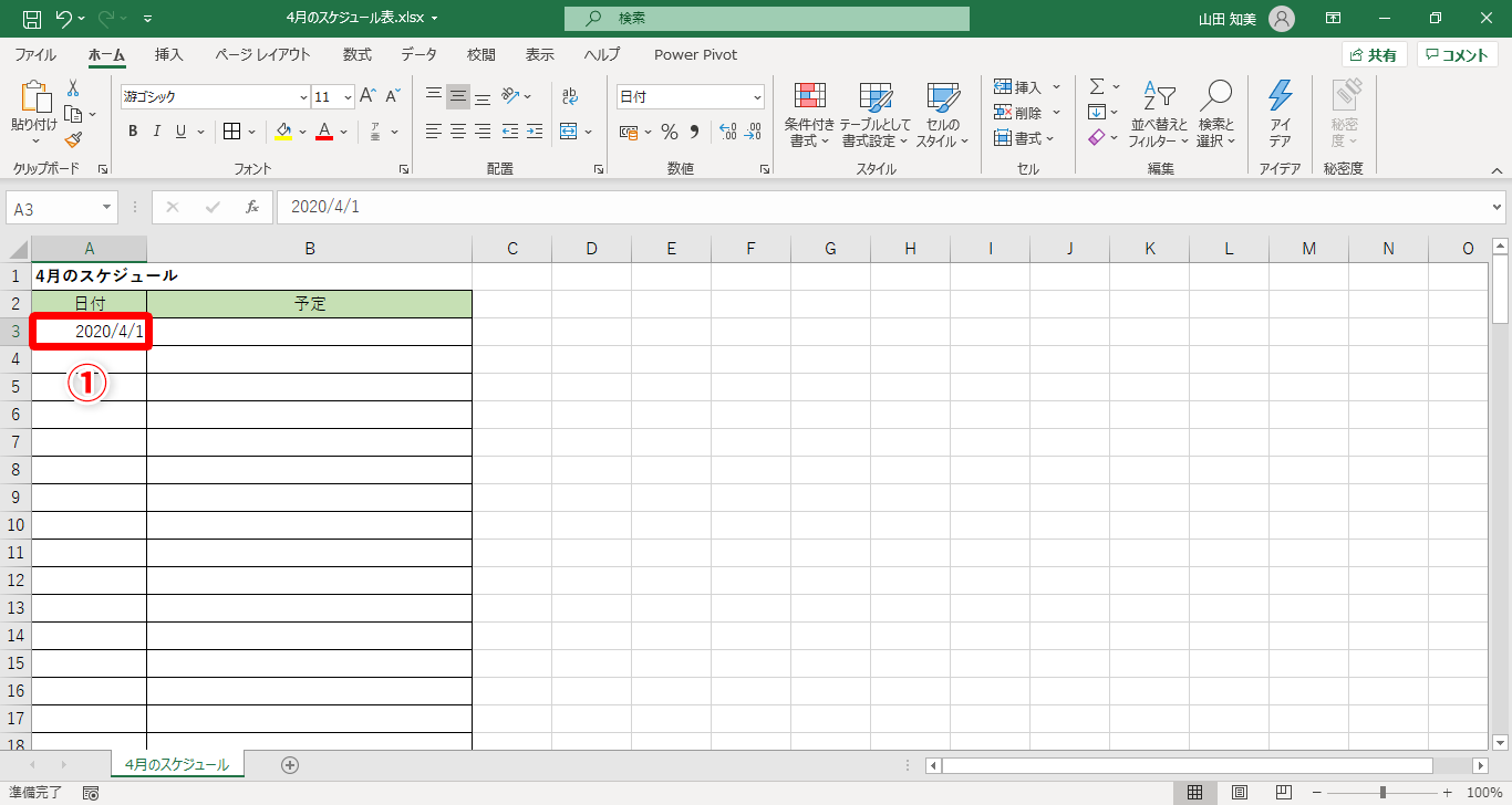 【Excel】新年度のスケジュール表に一工夫!エクセルで日付欄へ曜日も表示する方法