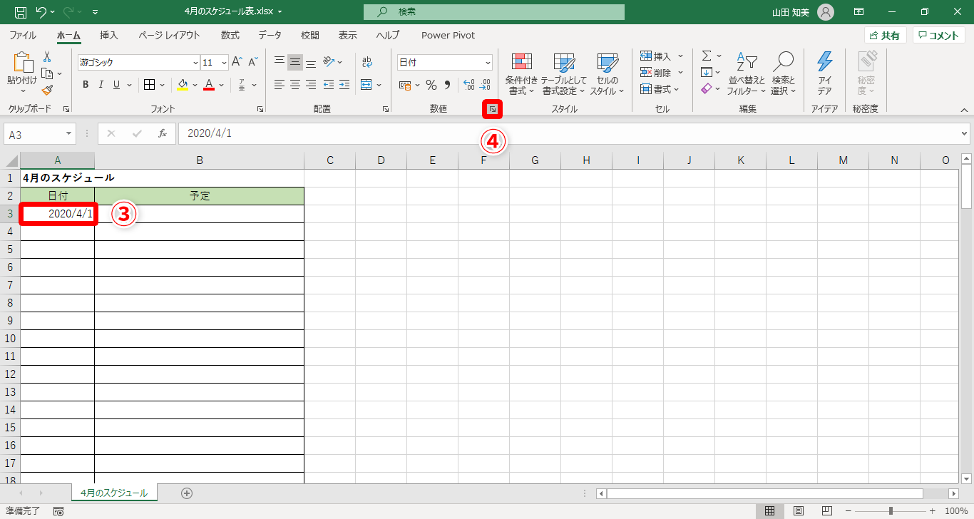 【Excel】新年度のスケジュール表に一工夫!エクセルで日付欄へ曜日も表示する方法