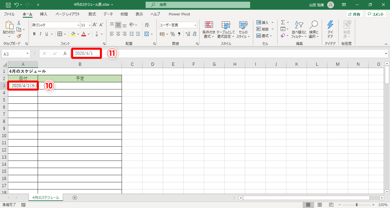 【Excel】新年度のスケジュール表に一工夫!エクセルで日付欄へ曜日も表示する方法