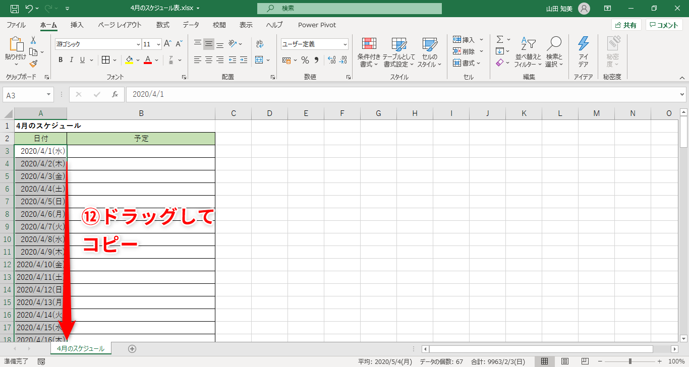 【Excel】新年度のスケジュール表に一工夫!エクセルで日付欄へ曜日も表示する方法