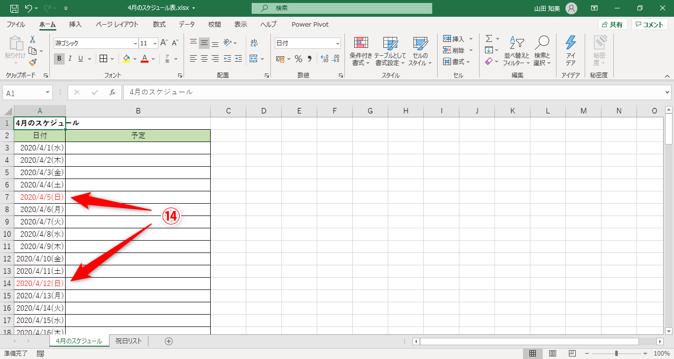 【Excel】土曜は青、日曜は赤、祝日はオレンジに!エクセルのスケジュール表で日付を色分けする方法(7/15)