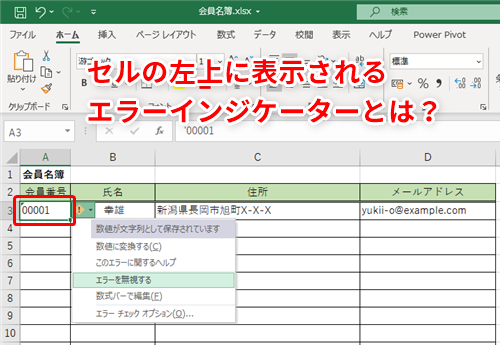【Excel】セルの左上に表示される緑色の三角形はなに?エクセルのエラーインジケーターを消す方法