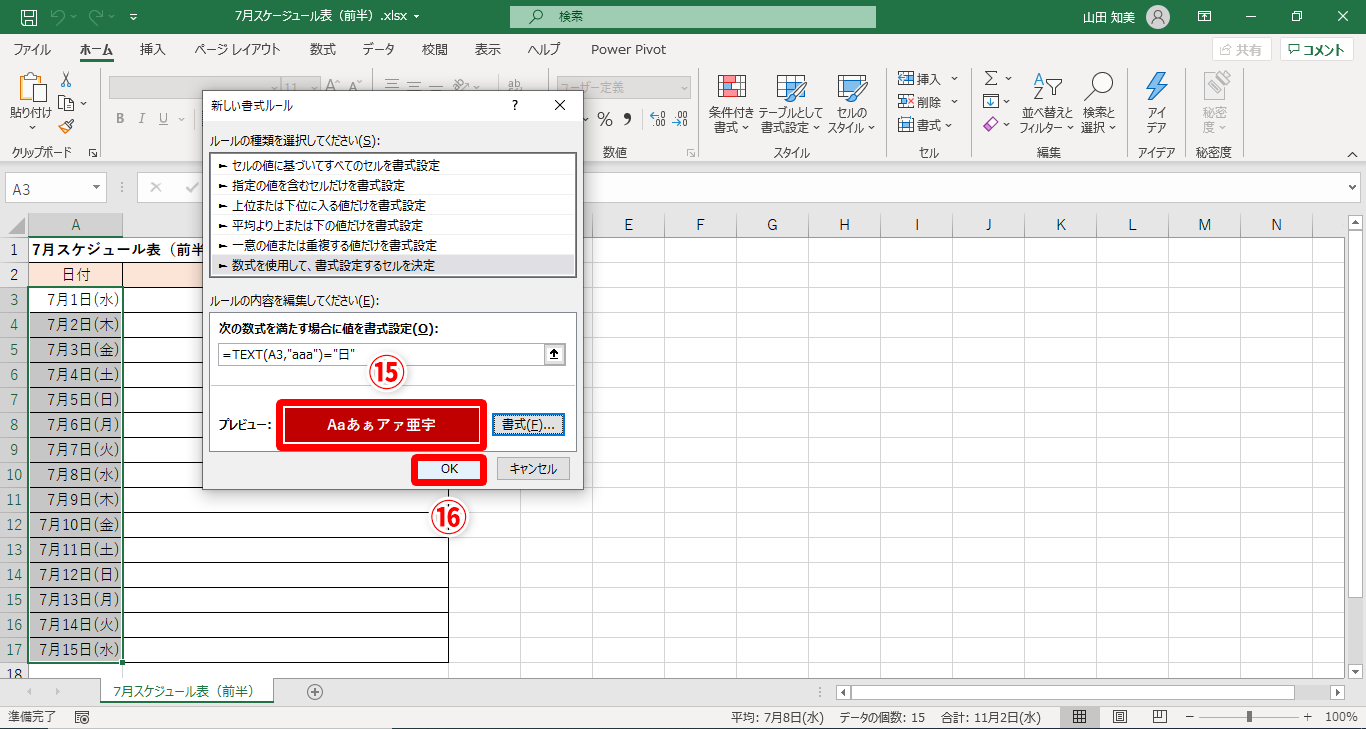 【Excel】「土曜は青、日曜は赤」のスケジュール表、WEEKDAY関数よりもっと簡単に作る方法は?