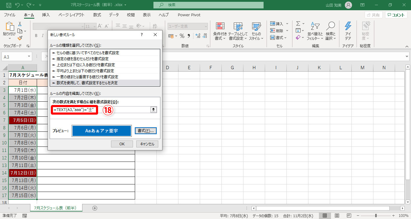 【Excel】「土曜は青、日曜は赤」のスケジュール表、WEEKDAY関数よりもっと簡単に作る方法は?