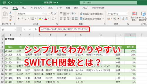 【Excel】IF関数が苦手な人へ、もう一つの救世主!エクセルのSWITCH関数はIFS関数とどう使い分ける?