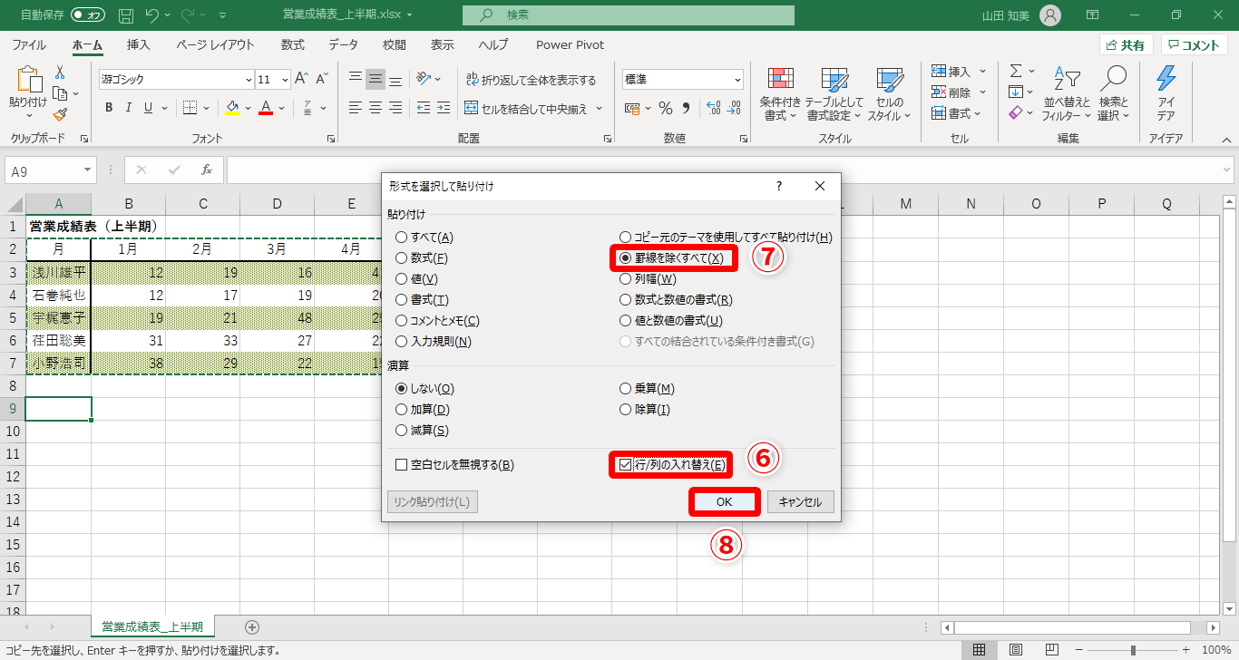 【Excel】表の行と列を入れ替えたら罫線がおかしくなった!エクセルで行と列を入れ替えた際のトラブル対策