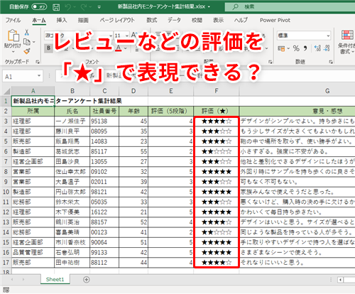 【Excel】『星三つです!』をエクセルで再現!評価を記号で表して視覚化するテク