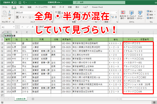 【Excel】全角・半角の統一を手動でやるのは非効率!エクセルの関数で一気に修正するテク