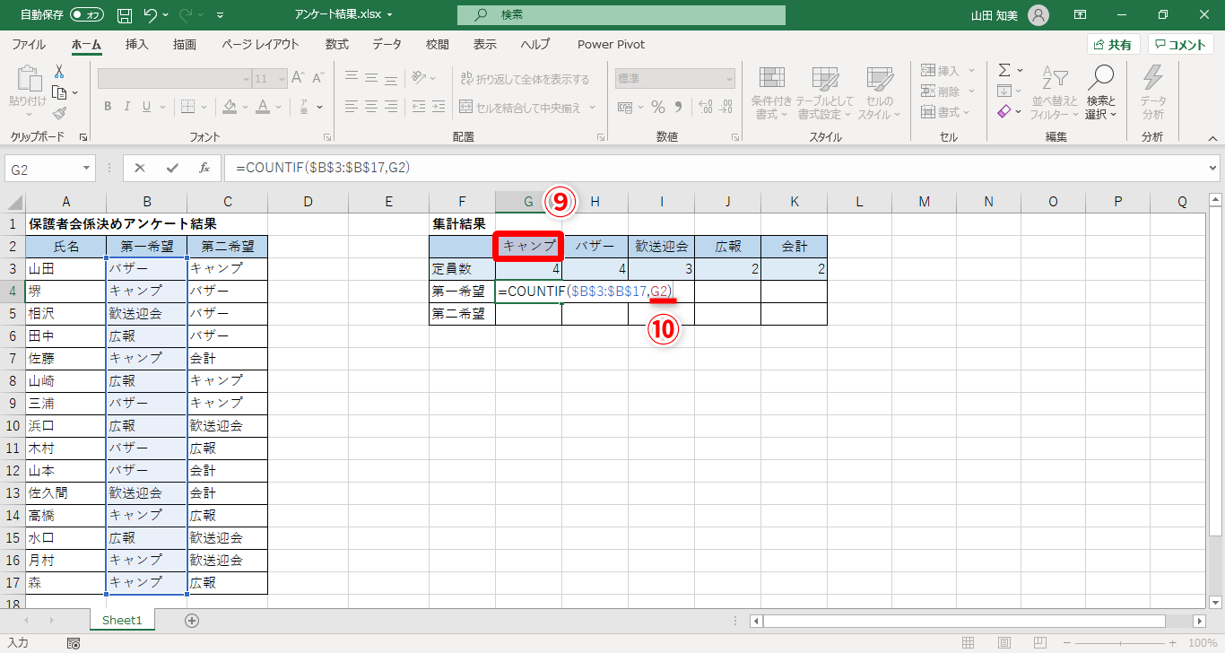 【Excel】担当したいタスクの希望人数はCOUNTIF関数を活用して求めましょう(6/11)