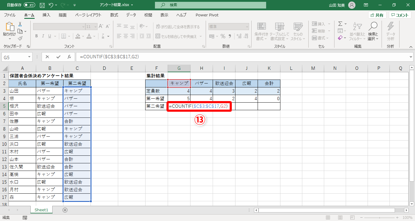 【Excel】担当したいタスクの希望人数はCOUNTIF関数を活用して求めましょう(9/11)