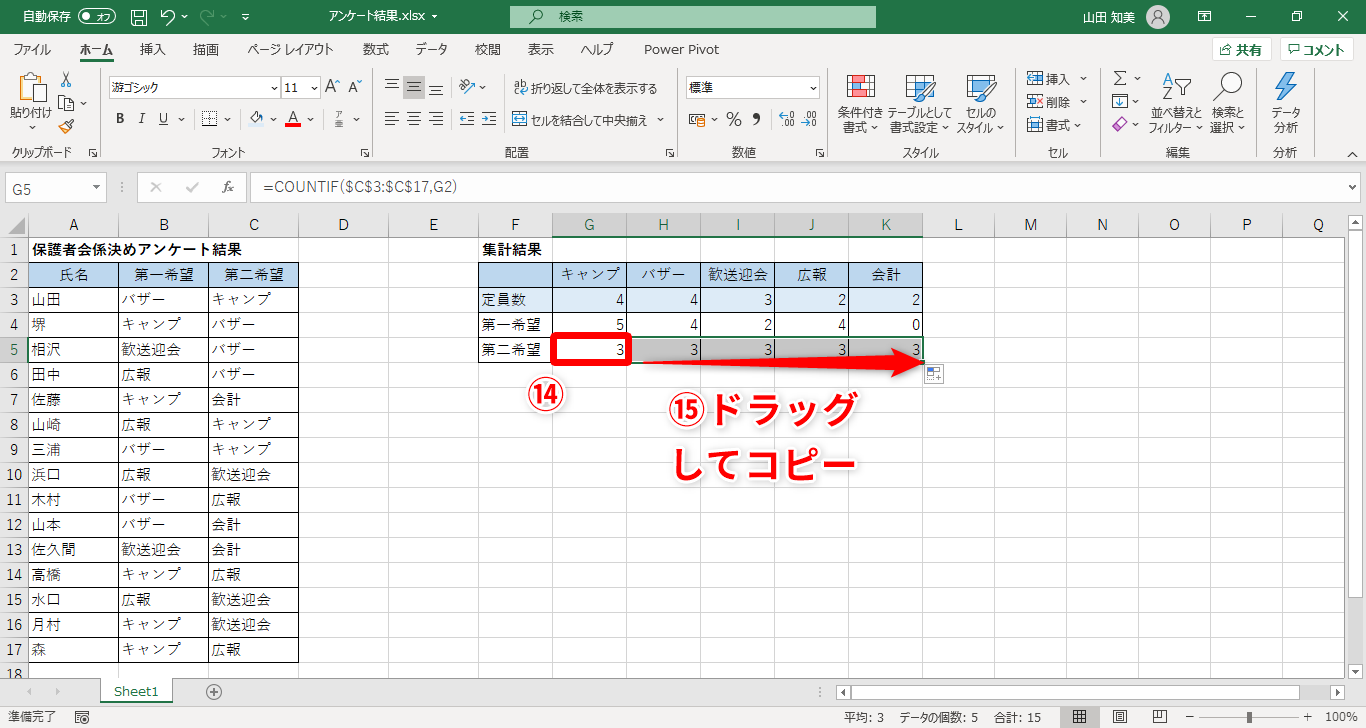 【Excel】担当したいタスクの希望人数はCOUNTIF関数を活用して求めましょう(10/11)