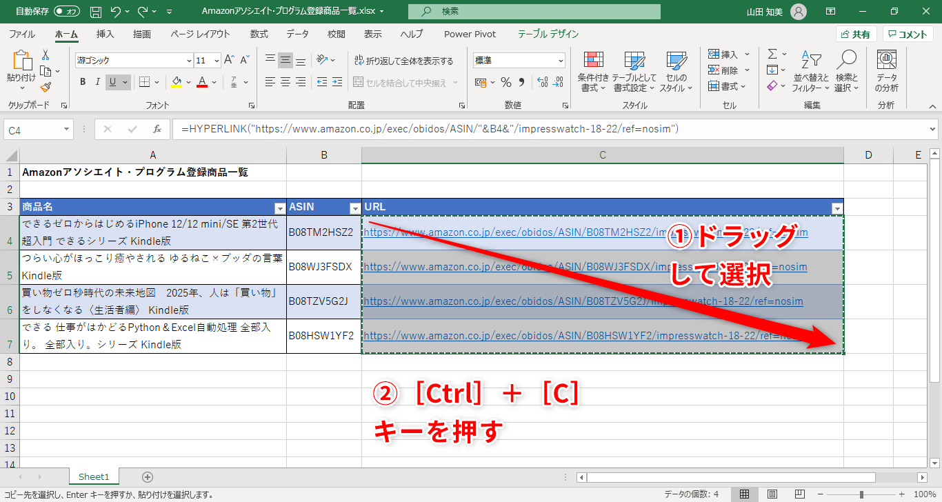 【Excel】Amazonのアフィ用リンクはHYPERLINK関数と「&」を活用して一括作成しましょう!