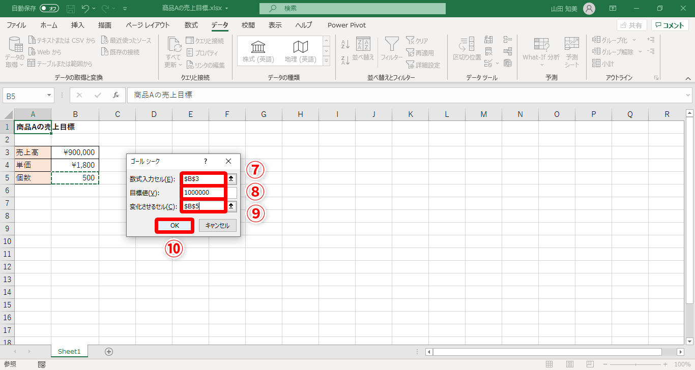 【Excel】複雑な式を入力したくない!目標達成に必要な数値はゴールシーク機能で簡単に逆算できます