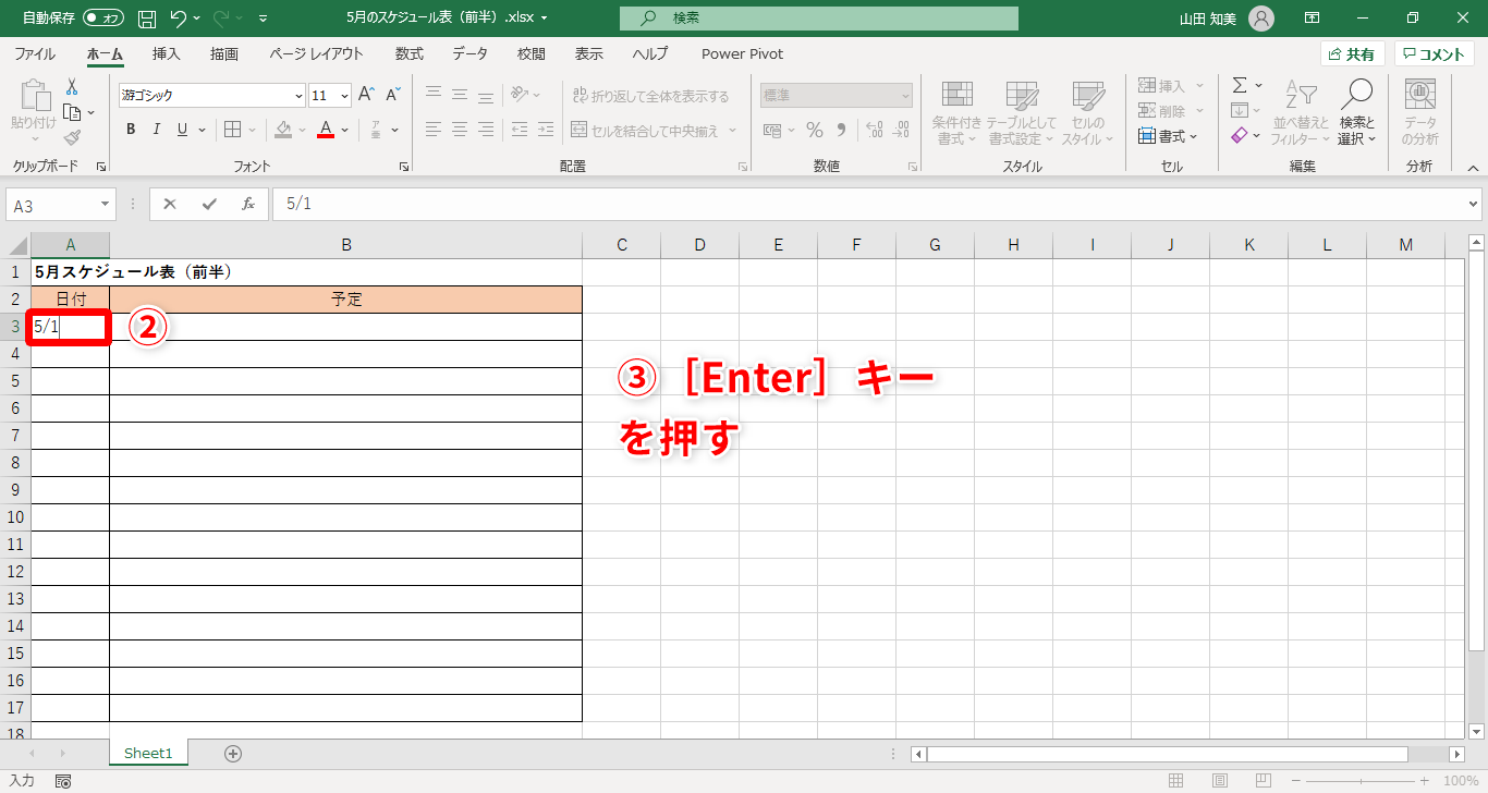 【Excel】曜日のベタ書きはダメ!ユーザー定義の表示形式を使えば日付の後に表示されます