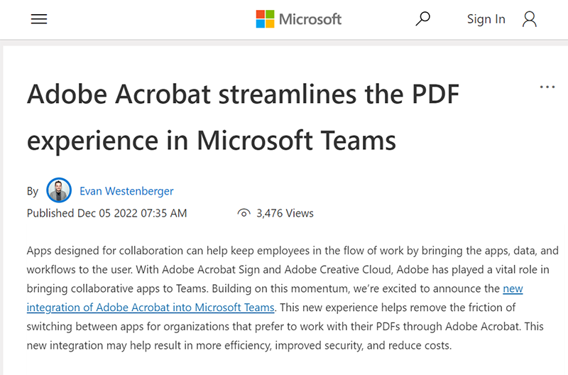 アドビがマイクロソフトの「Microsoft Teams」に「Adobe Document Cloud」を統合
